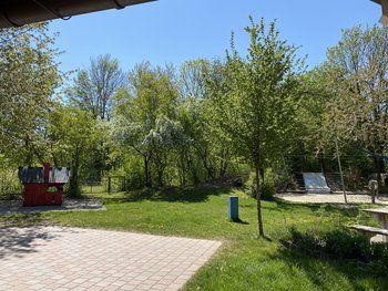 Spielsandgruben mit Spielgeräten und einem in der Nähe stehenden Wasserbottich laden zum Kuchenbacken, Wasserplätschern, Blumengießen und vielem mehr ein. Der seit Jahren vorhandene Randbewuchs des Grundstücks konnte weitestgehend erhalten werden, so dass das Haus in eine grüne Umgebung eingebettet ist.