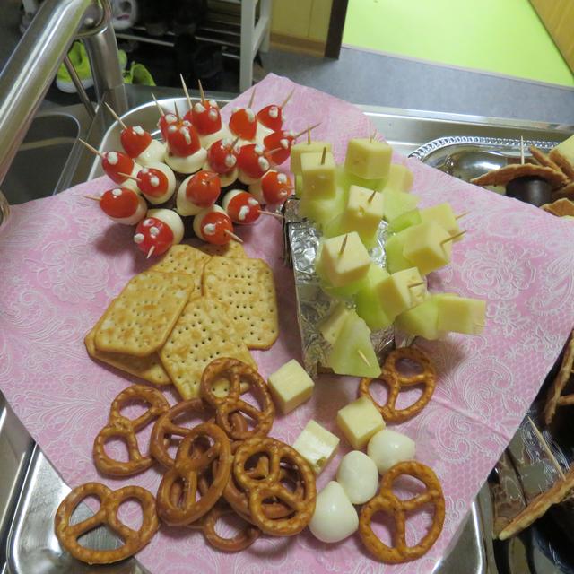Die Nachmittagsbrotzeit findet in den jeweiligen Gruppen statt. Hier wird ein kleines Tischbuffet angeboten.