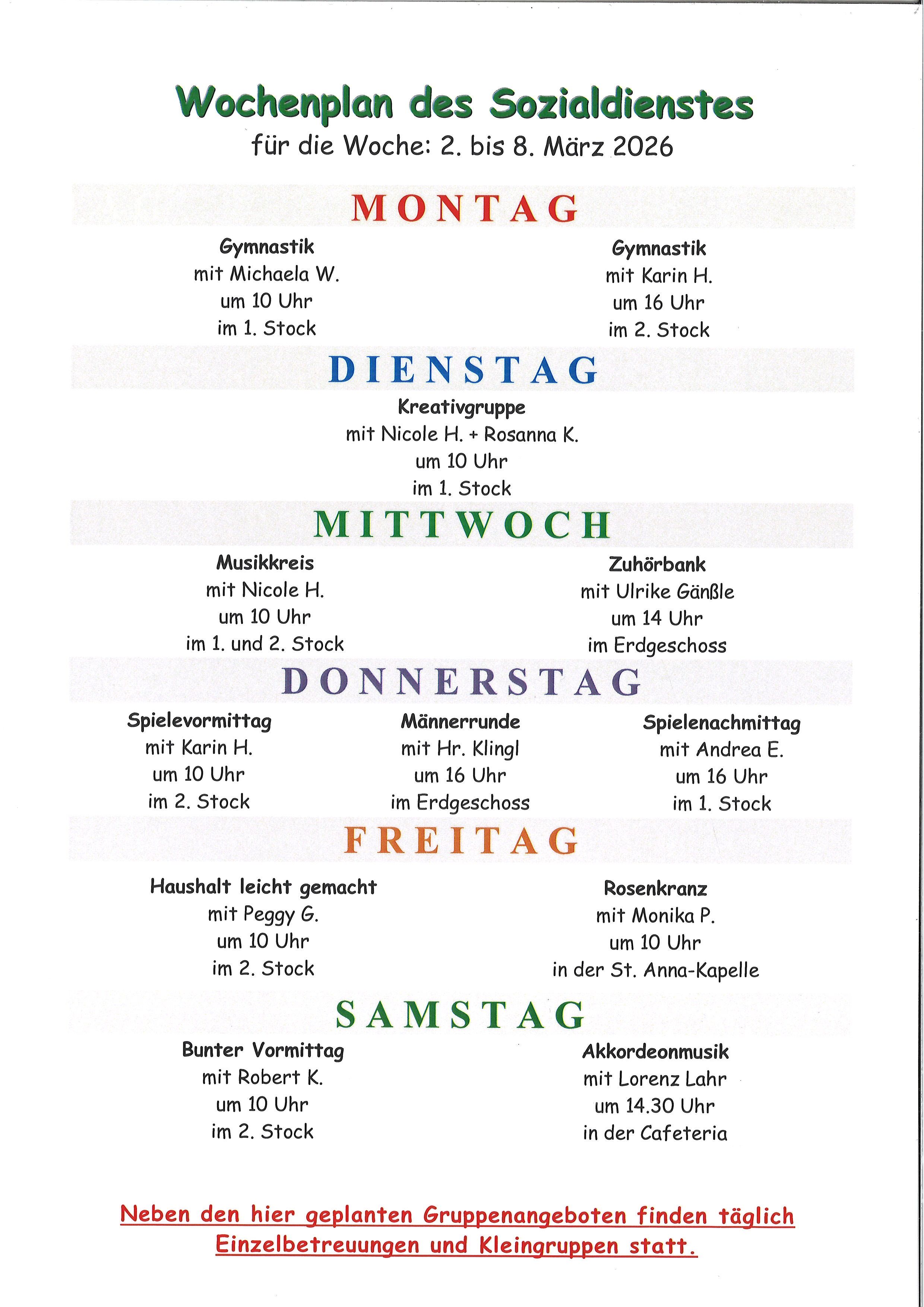Wochenpläne vom 02.03.2026 - 08.03.2026